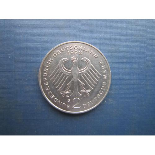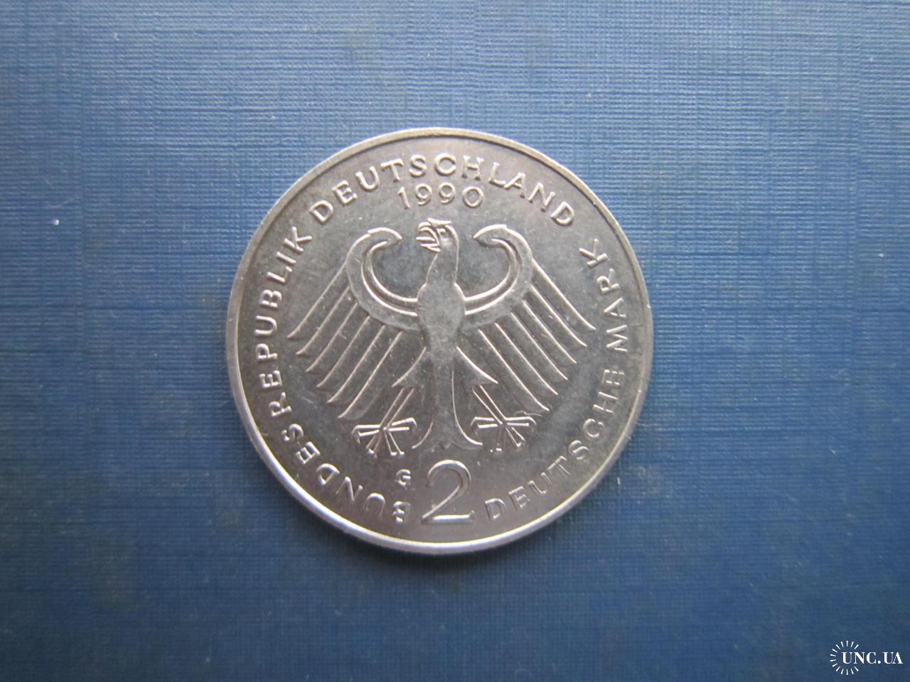Монета 2 марки Німеччина ФРН 1990 G Франц Йозеф Штраус