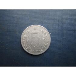 Монета 5 гелерів Чехословаччина ЧСР 1953