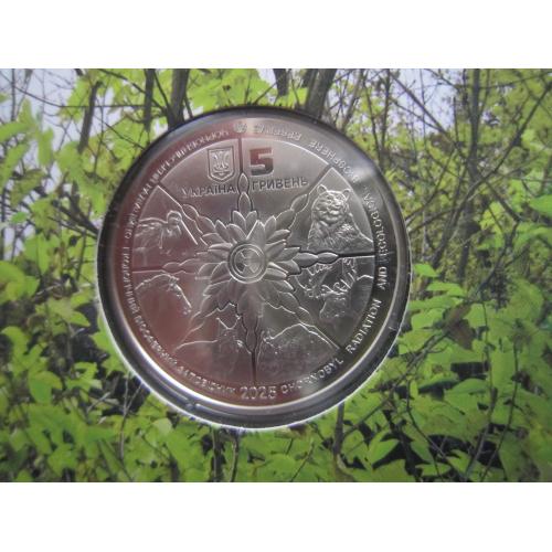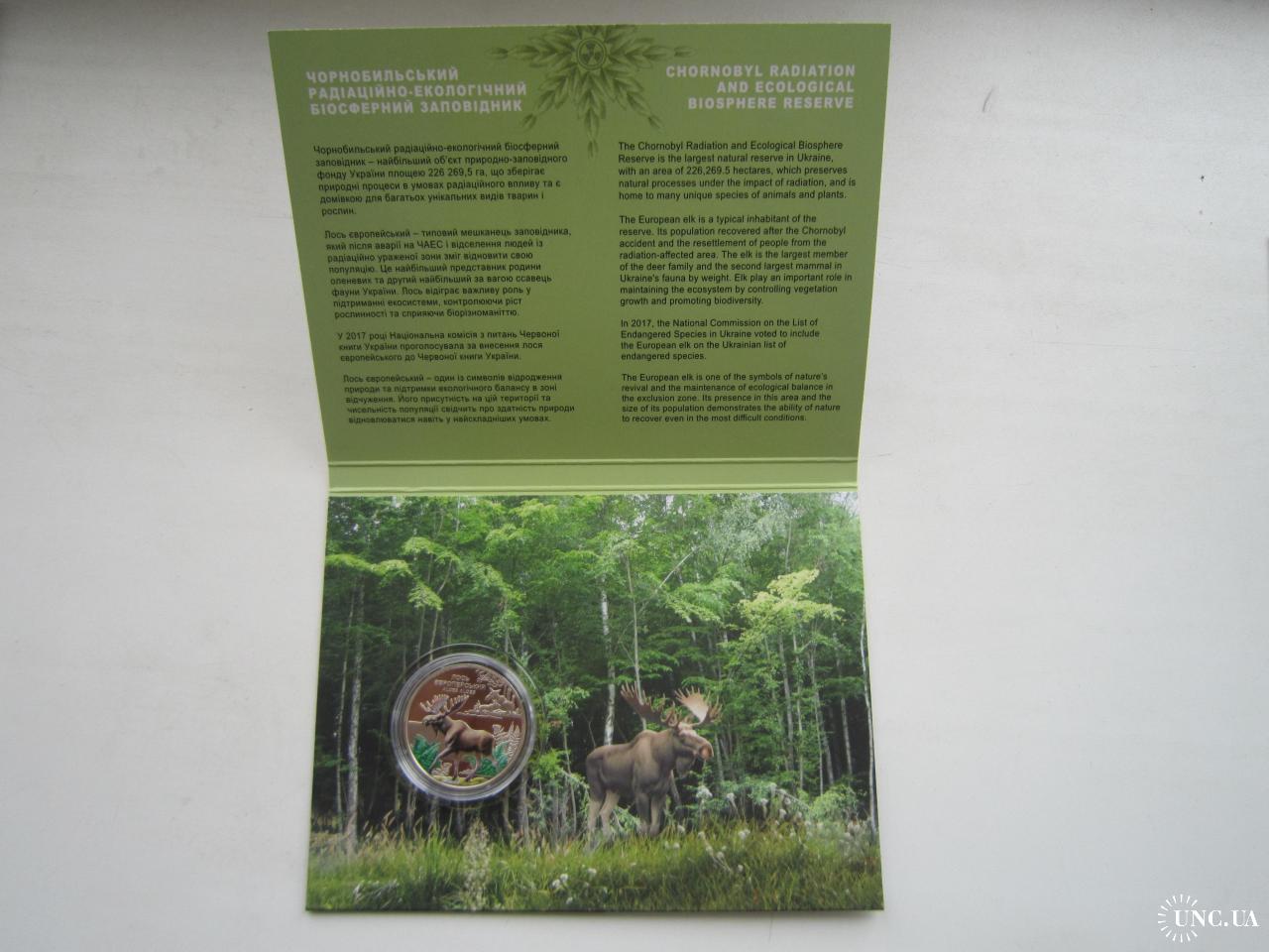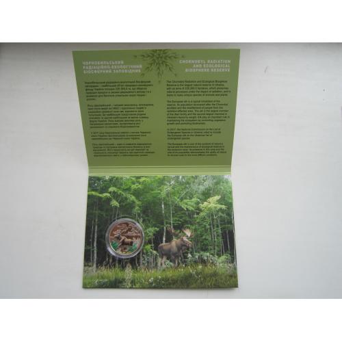 Монета 5 гривень НБУ Україна 2025 в буклеті Лось європейський Чорнобильський заповідник