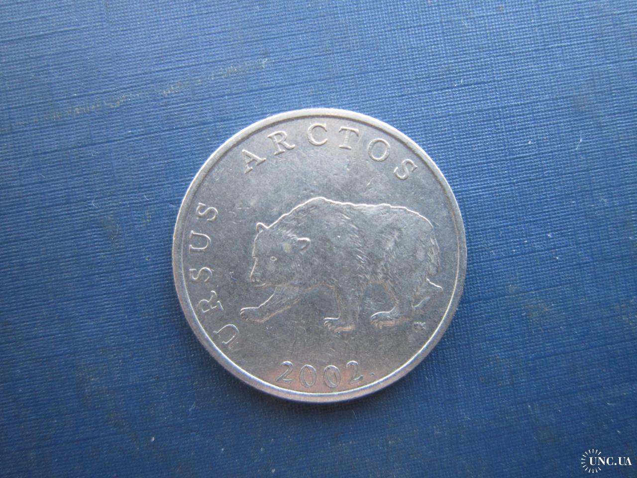 Монета 5 куна Хорватія 2002 парний рік фауна ведмідь легенда латинь