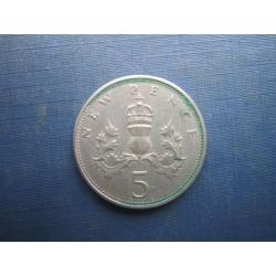 Монета 5 пенсів Великобританія 1969 велика