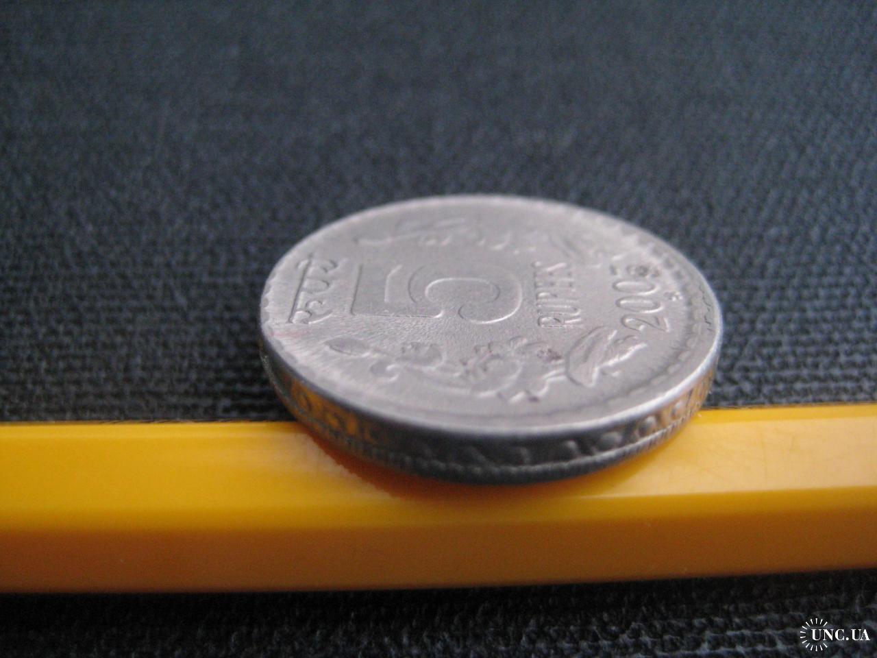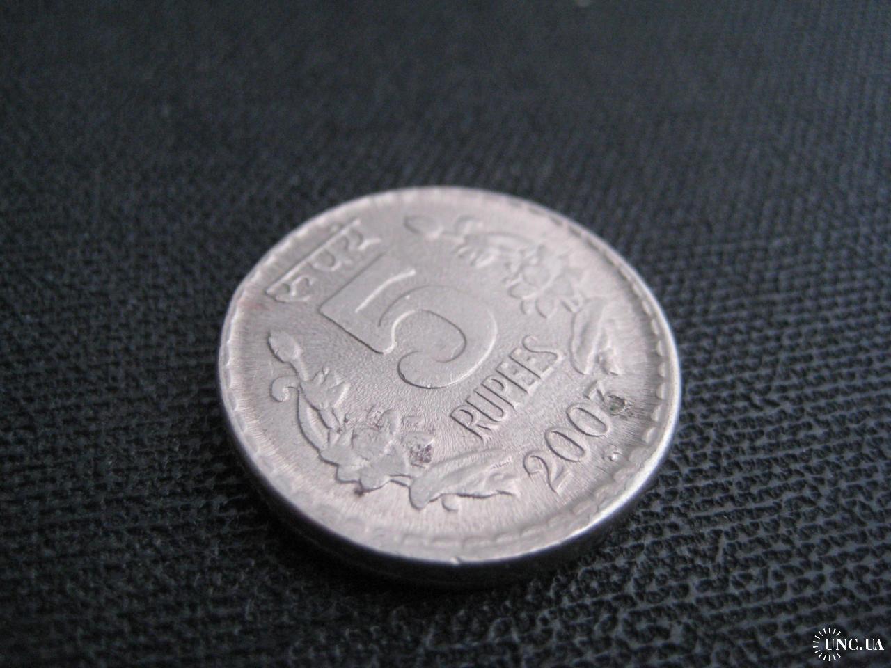 №2824. Метал-нікель. Оригінальна монета - 5 рупій 2003 Індія (монетний двір - Хайдарабад). Стан прошу оцінювати по фото. Діаметр-23мм. Пересилка - Укрпошта, Нова пошта. Для киян можливість зустрічі та перегляду (неділя метро Нивки). В РФ и Белоруссию не отправляю!