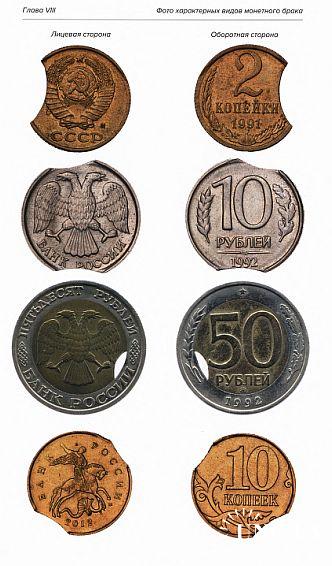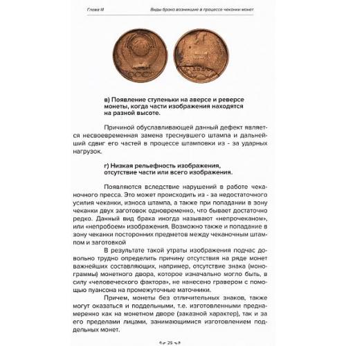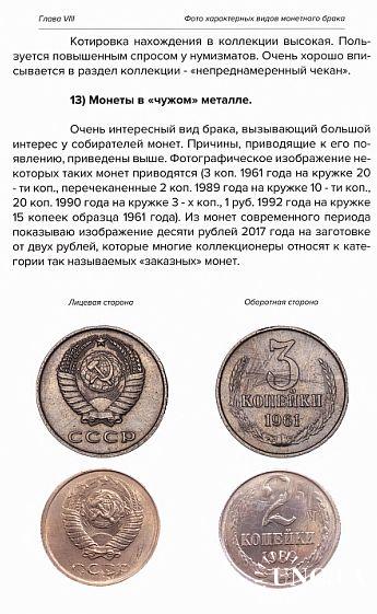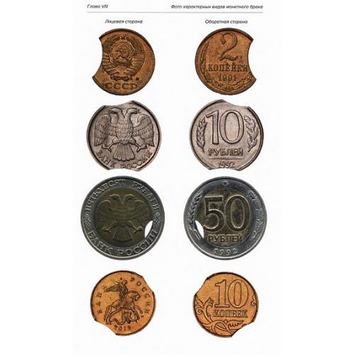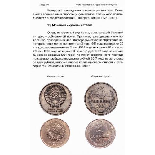 Уточнена стоимость как на монеты с признаками брака, так и на обычные тиражные монеты СССР и России. (на момент выхода книги)