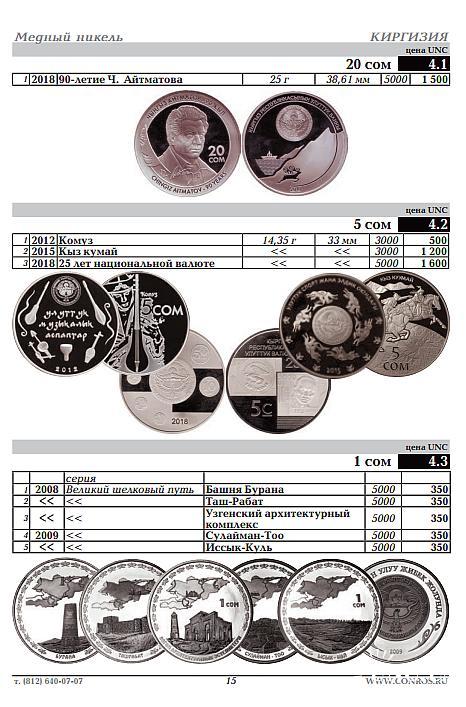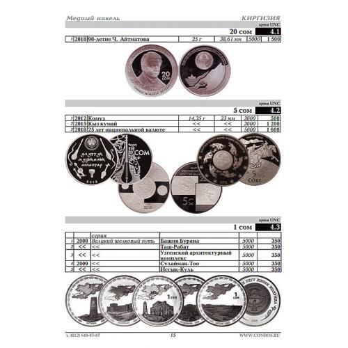 Издание представляет актуальные цены на монеты современного периода данных стран, как регулярного чекана, так и памятных, выполненных из драгоценных металлов. Каждый тип сопровождается качественным цветным изображением. Дается информация о тираже, диаметре, металле и весе.