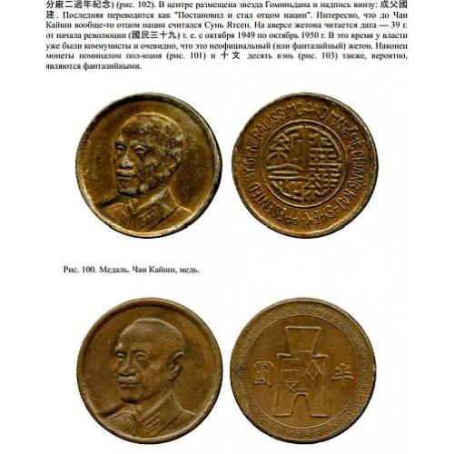 В книге в занимательной форме описывается история чеканки китайских монет с изображением политических деятелей начиная с первых лет революции до прихода к власти коммунистов.
