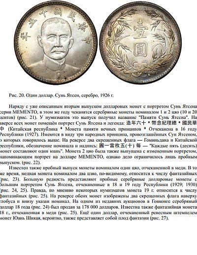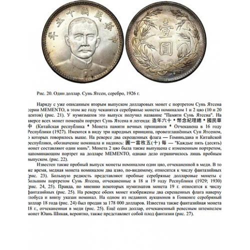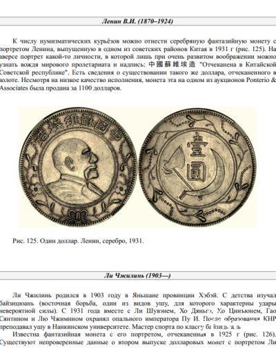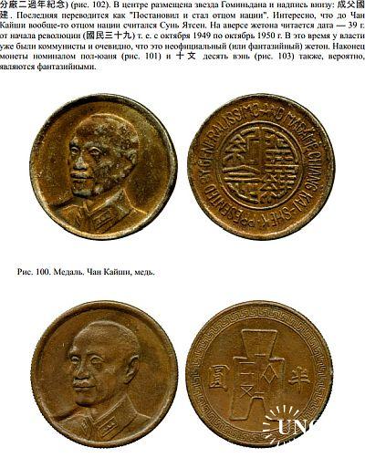 В книге в занимательной форме описывается история чеканки китайских монет с изображением политических деятелей начиная с первых лет революции до прихода к власти коммунистов.