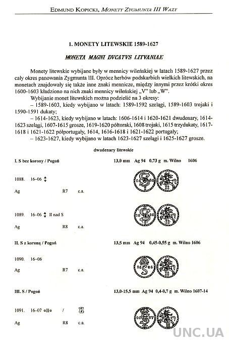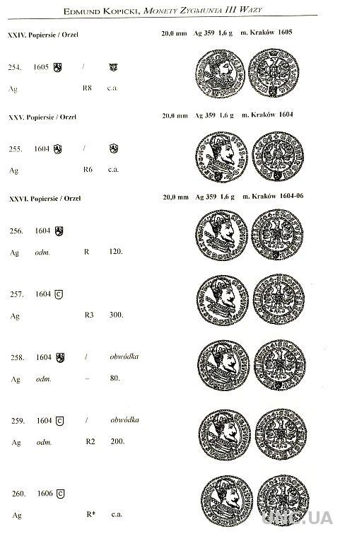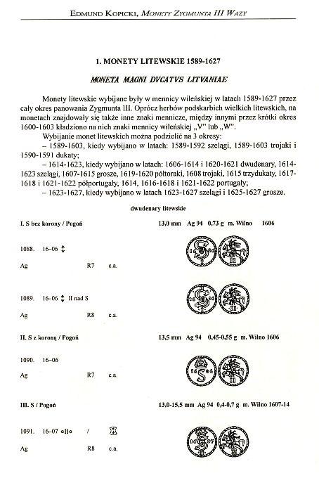 Каталог монет польских времен правления Сигизмунда III Вазы одного из светил польской нумизматики Э. Копицкого. Характерным как раз для польской школы нумизматики является представление монет в каталогах прорисовками.