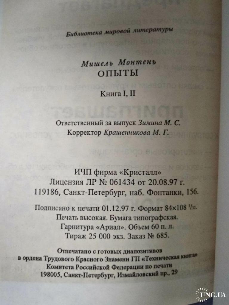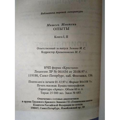 Мишель Экем де Монтень • Издательство "Кристалл", "Респекс" • 1998 год • 2 тома (960 + 704 страницы) • Переводчики: А.С. Бобович, Ф.А. Коган-Бернштейн, отличное состояние.