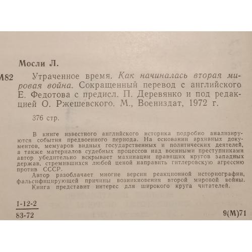 Мосли. Утраченное время. Как начиналась вторая мировая война.