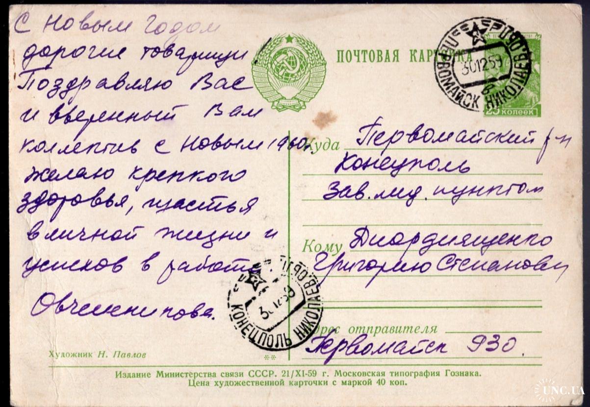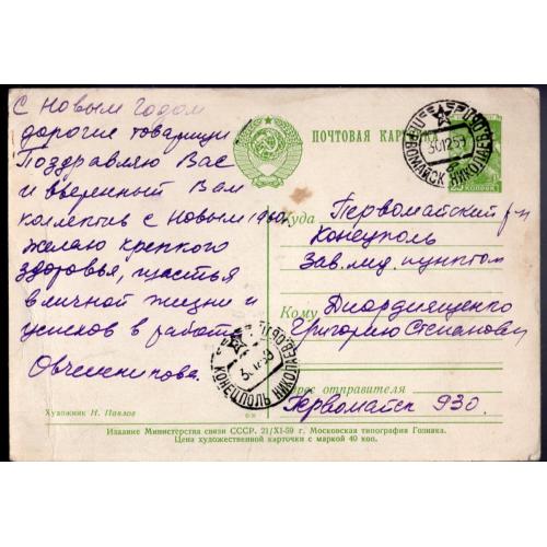 Н. Павлов С Новым годом! 21.11.1959 ДМПК прошла почту Первомайск - Конеуполь