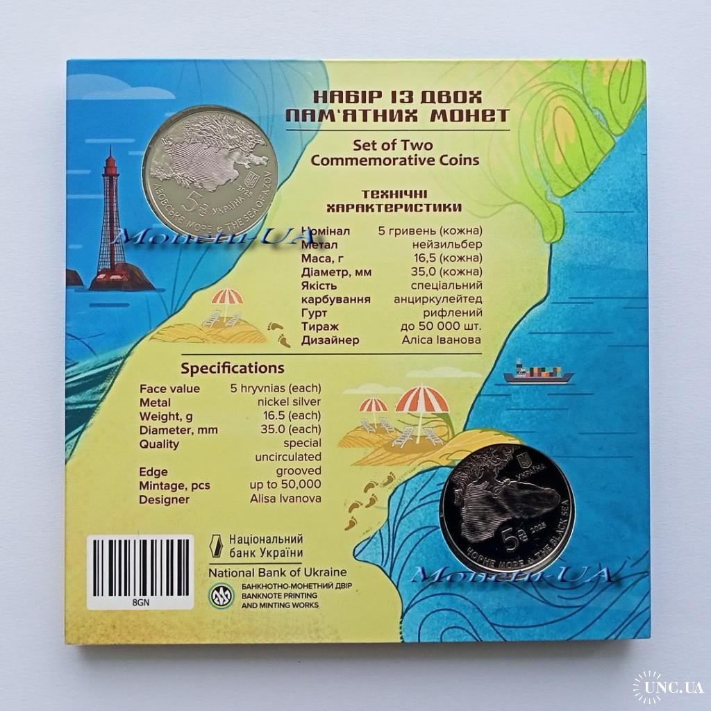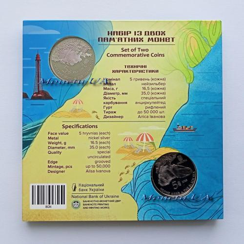 Набір із двох пам'ятних монет у сувенірній упаковці "Мешканці морських глибин" 2025 рік / Україна / НБУ / в сувенірній упаковці / буклет
