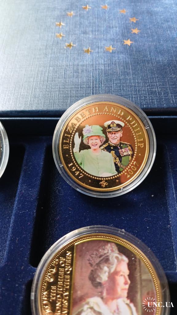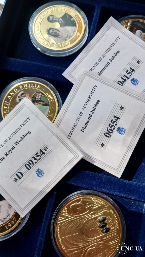 - Свадебное фото крупным планом /королева с воротником на аверсе (Медно-никелевый сплав с позолотой)