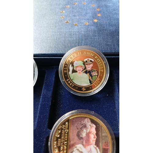 - Елизавета и Филипп приветствуют людей (Медно-никелевый сплав с позолотой)