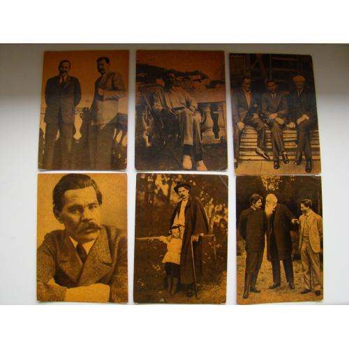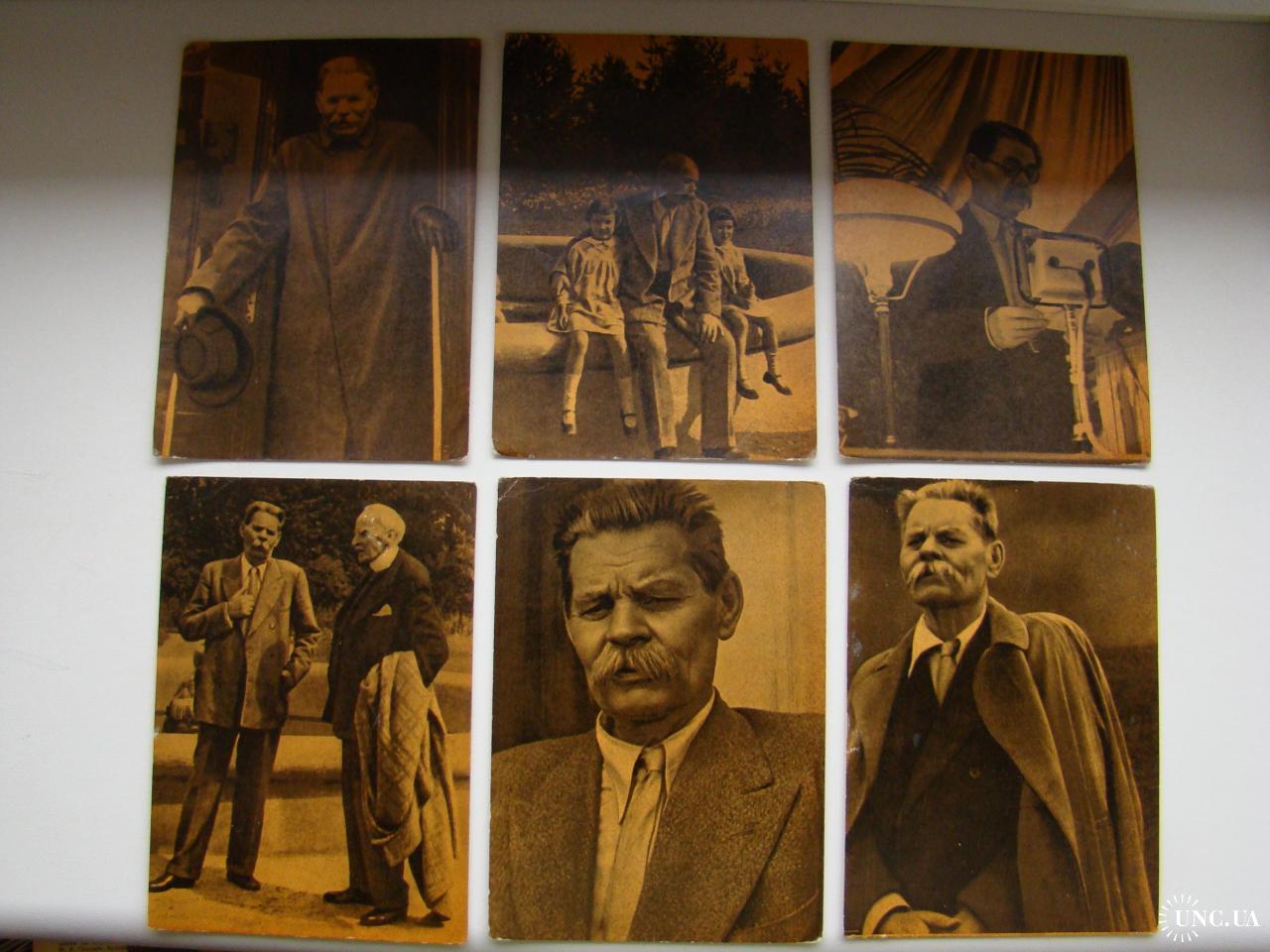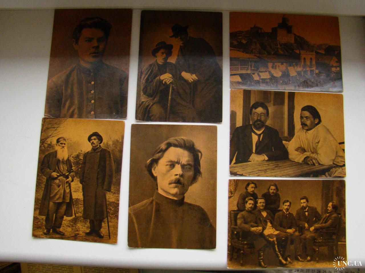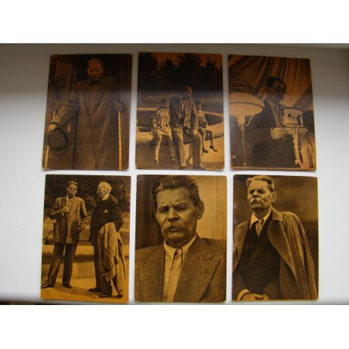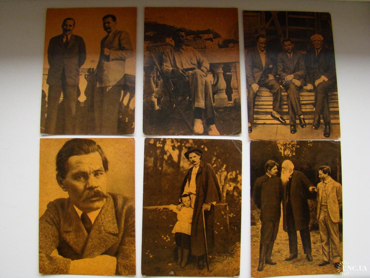1961-1980Нечастый набор открыток, доживший до наших дней. Полный набор в фирменной упаковке с вкладышем (биография М.Горького). На каждой открытке имеется надпись, где, когда и с кем было сделано фото Горького. Основные фото сделаны в царское время и в период Гражданской войны. Все открытки чистые. В остальном все как на фото.