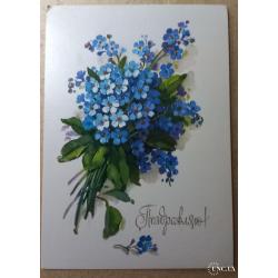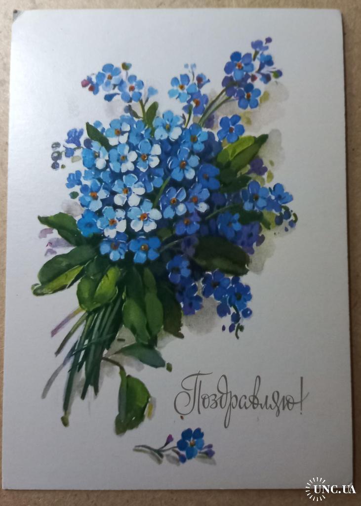 Художественная открытка. «Поздравляю». Полевые цветы. 1981 г. Заполнена, как QSL-карточка. Художник Г. Куртенко. «Изобразительное искусство». Москва. 1981. Т. 2,2 млн. На обратной стороне – технические данные радио-обмена. Слегка подмят верхний левый уголок.