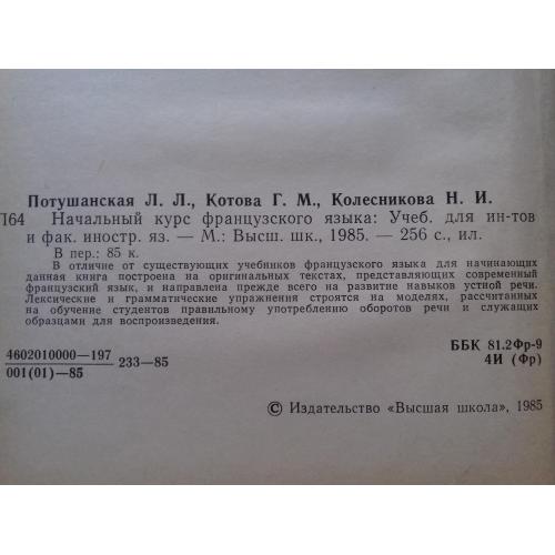 Л.Л. Потушанская, Г.М. Котова, Н.И.Колесникова. Издательство "Высшая школа" М. 1985 г.