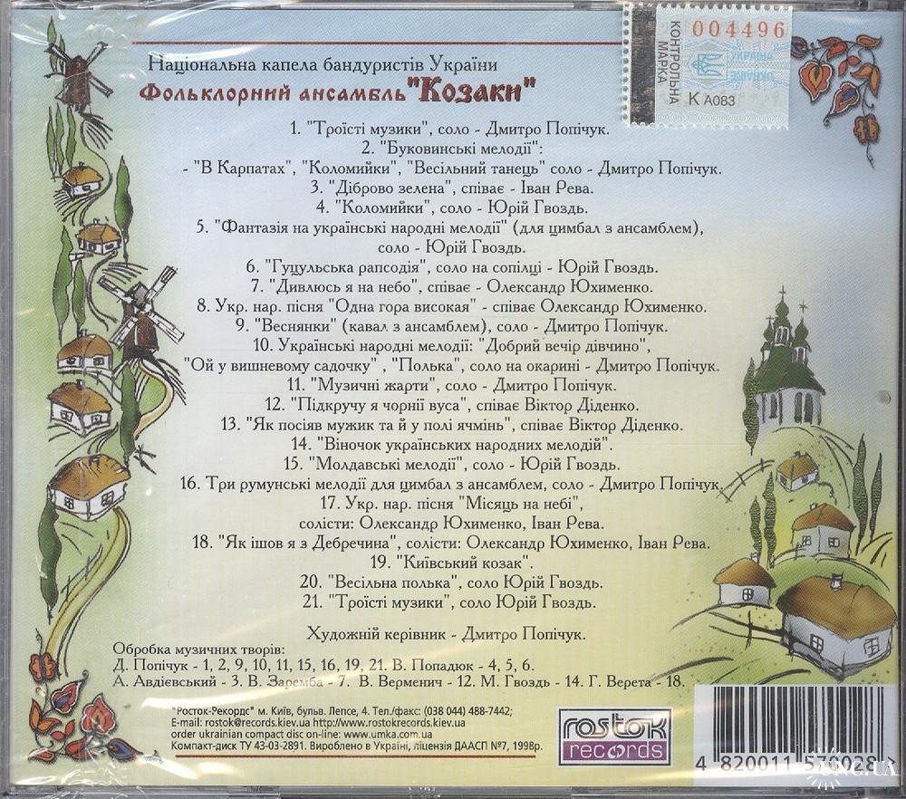 1981-2000Національна капела бандуристів України Фольклорний ансамбль "Козаки". Репертуар див. на звороті