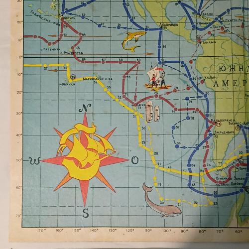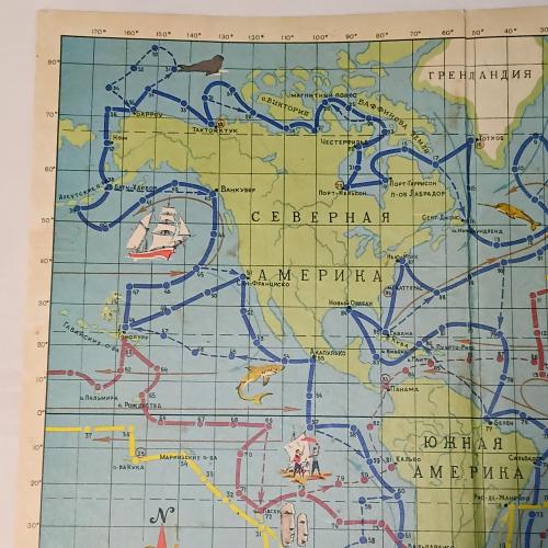 1961-1980Настольная игра СССР "По морям и океанам". Только игровое поле - карта.