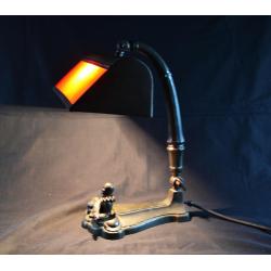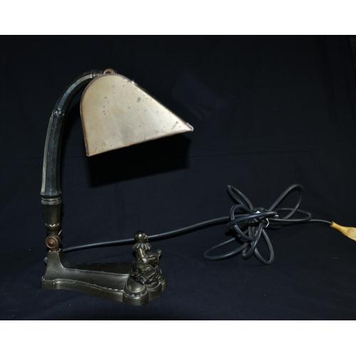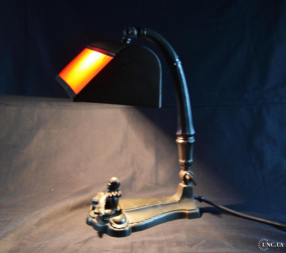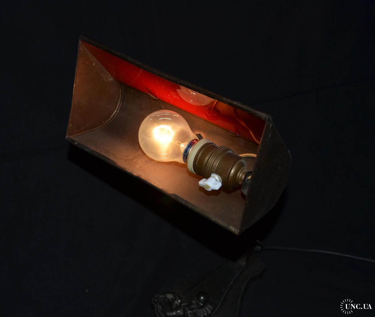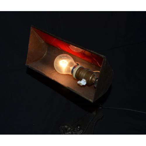Удлинённый абажур крепится на подвижном шарнире, позволяющем изменять угол наклона, а второй шарнир расположен у основания.