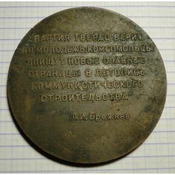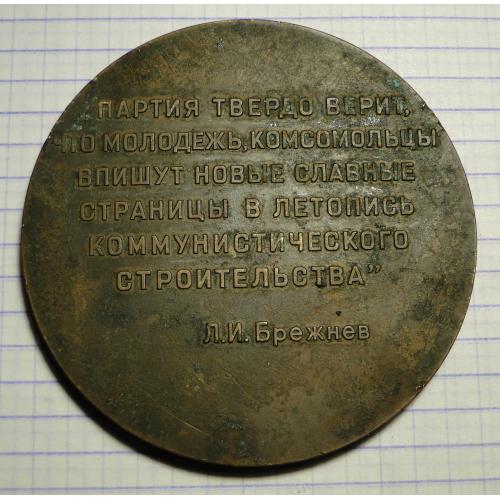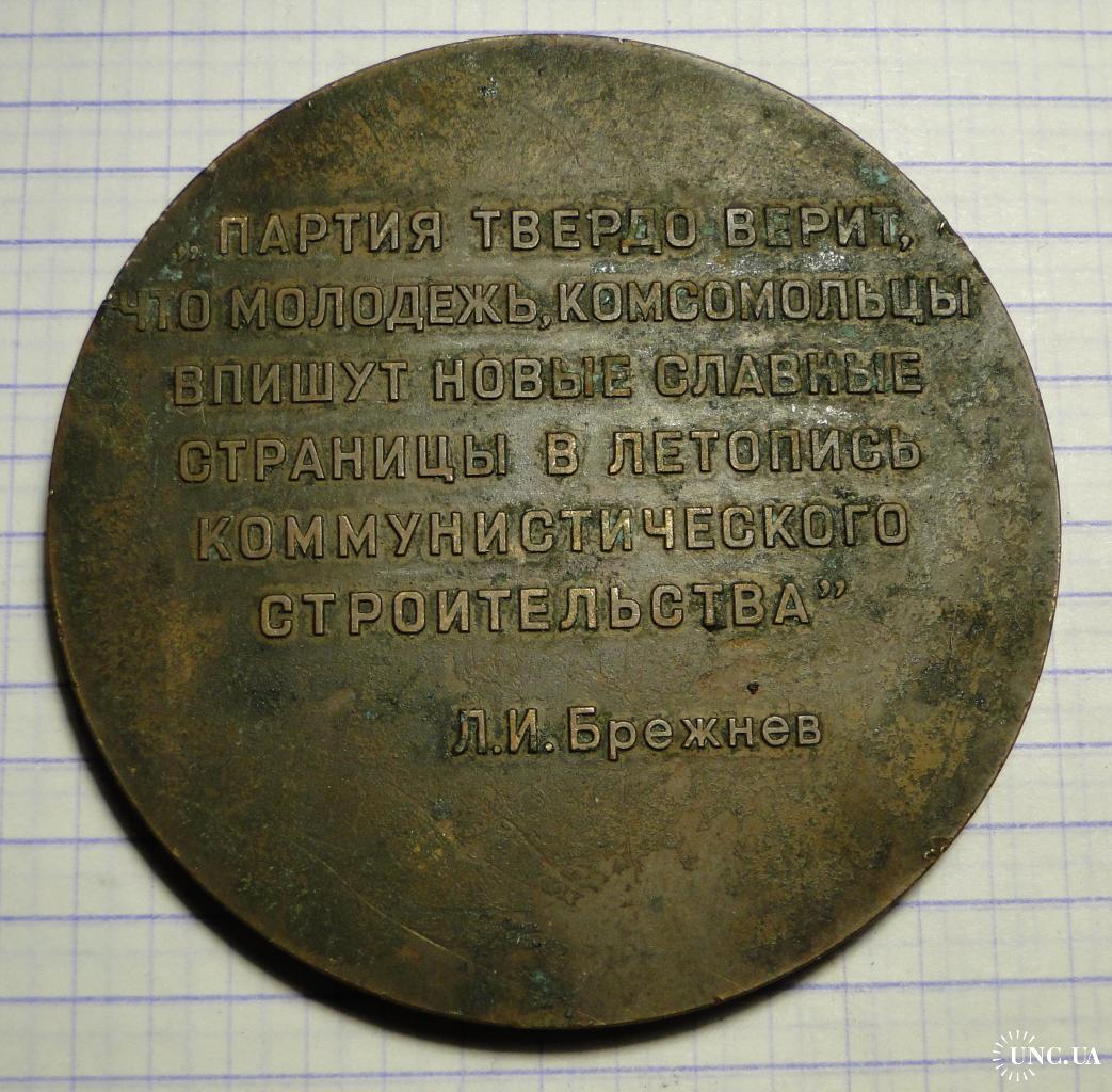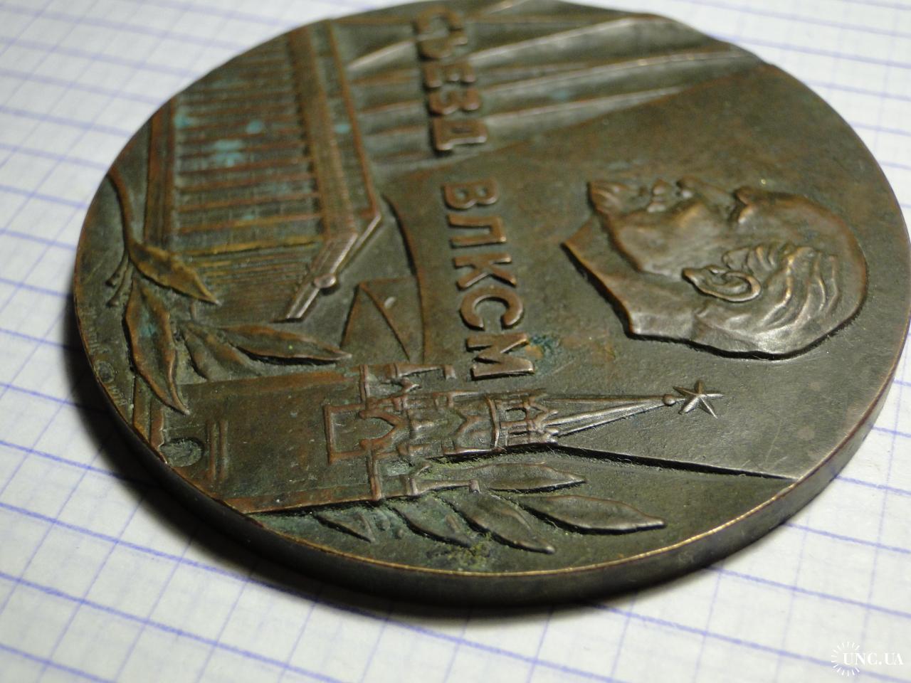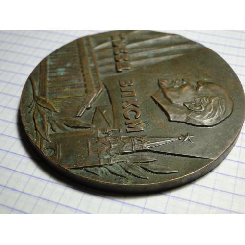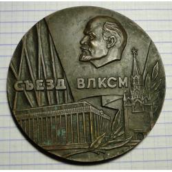 Настольная медаль, посвящённая XVIII съезду ВЛКСМ. Диаметр 6,5 см. Тяжелая.