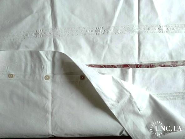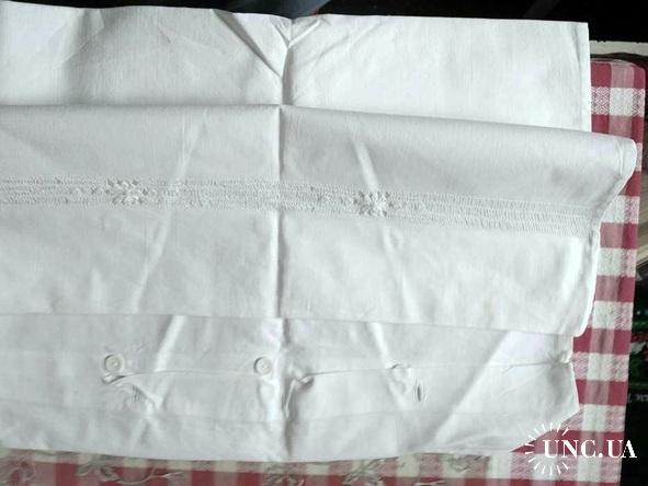 1981-2000Наволочка наволочки 2 шт. натуральный белый хлопок бязь с ручной мережкой на пуговицах, раритет ссср