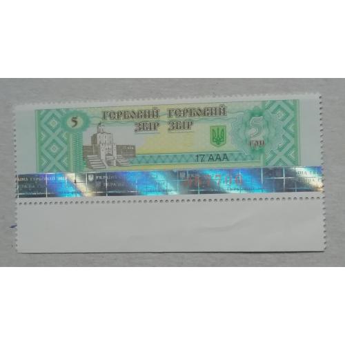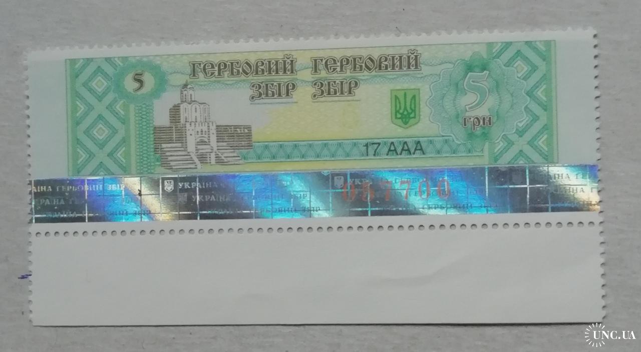 Непочтовые марки ГЕРБОВИЙ ЗБІР 5 грн з полосою