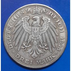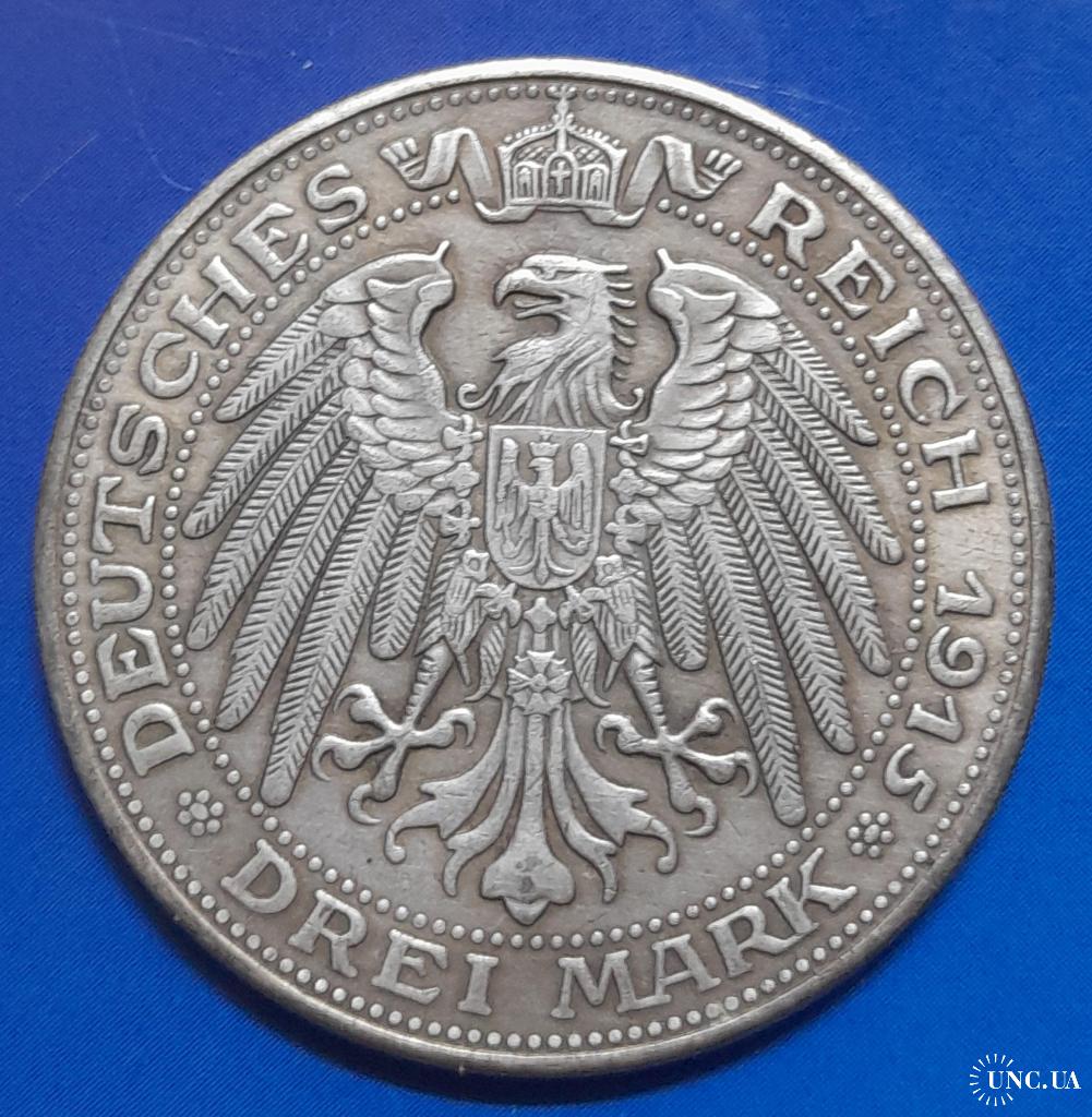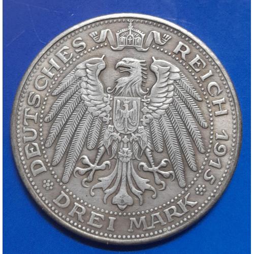 Німеччина. Королівство Пруссія 3 марки 1915 року. Вільгельм II. Копія. Стан монети на фото.