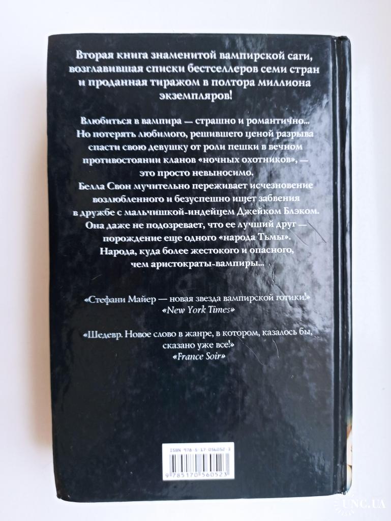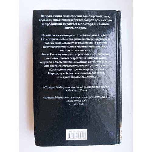 Это вторая книга знаменитой вампирской саги, возглавившая списки бестселлеров семи стран. Влюбиться в вампира - страшно и романтично... Но потерять любимого, решившего ценой разрыва спасти свою девушку от роли пешки в вечном противостоянии кланов "ночных охотников", - это просто невыносимо. Белла Свон мучительно переживает исчезновение возлюбленного и безуспешно ищет забвения в дружбе с мальчишкой-индейцем Джейком Блэком. Она даже не подозревает, что ее лучший друг - порождение еще одного "народа Тьмы". Народа, куда более жестокого и опасного, чем аристократы-вампиры...