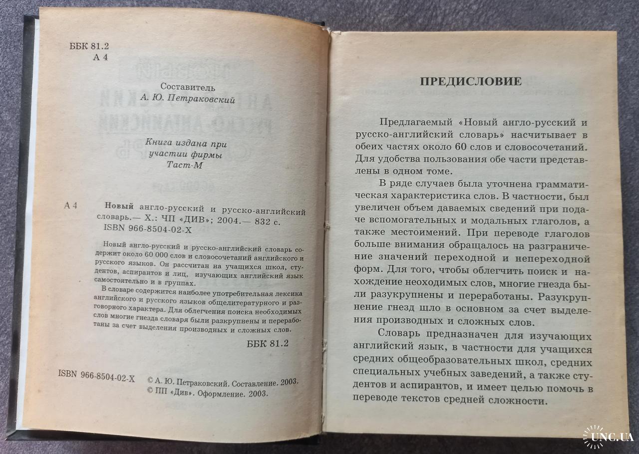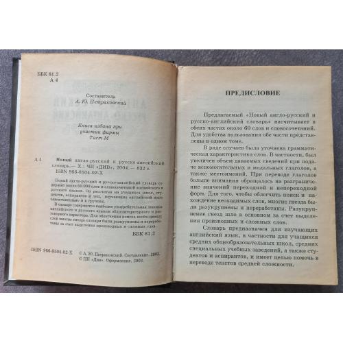 Новый англо-русский русско-английский словарь. Составитель А.Ю. Петраковский. Харьков: ЧП "ДИВ", 2004. - 832 с. Стан на скані