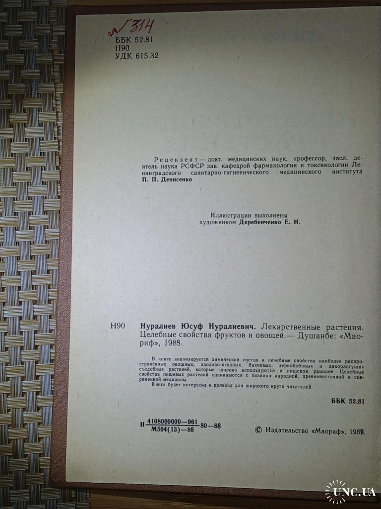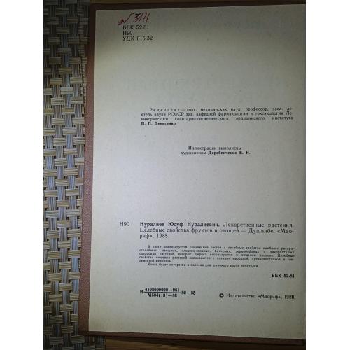 Целебные свойства фруктов и овощей. (Из опыта народной,древневосточной и современной медицины), тираж 50000 экз. Душанбе Маориф 1988г. 288 с., илл. твердый переплет,, обычный формат.