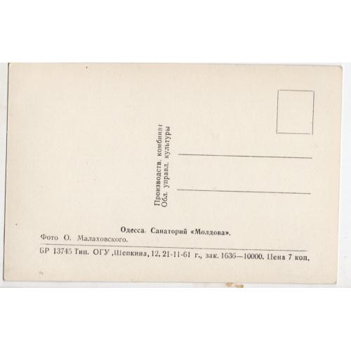 Одесса Санаторий Молдова фото Малаховского 21.11.1961 ПК обл. управл. культуры