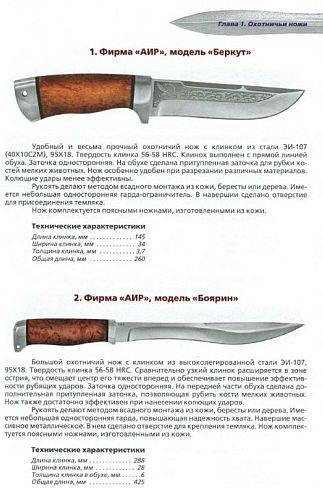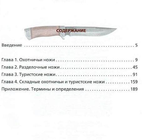 Книга представляет собой обзор охотничьих и туристских ножей, производимых в настоящее время крупнейшими отечественными ножевыми фирмами. Для каждой из более чем 300 моделей ножей, представленных в книге, приводится описание конструкции, технические характеристики и иллюстрированные материалы. Книга предназначена для охотников и туристов, любителей рыбной ловли, а также для всех, кто интересуется современным клинковым холодным оружием.