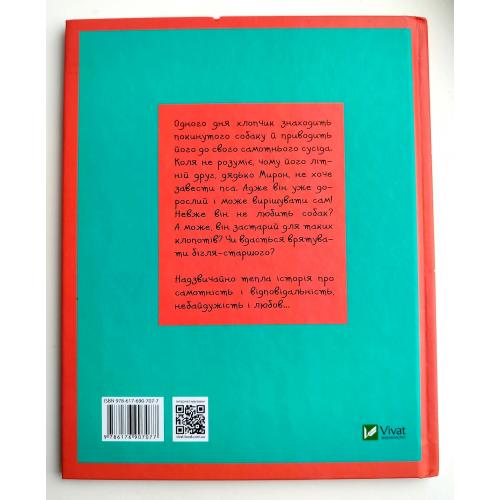 Коля не розуміє, чому його літній друг, дядь Мирон, не хоче завести пса. Невже він їх не любить? А може, він застарий для таких клопотів? Одного дня хлопчик знаходить покинутого собаку й приводить його до самотнього сусіда. На що готовий його літній друг, аби врятувати чотирилапого?