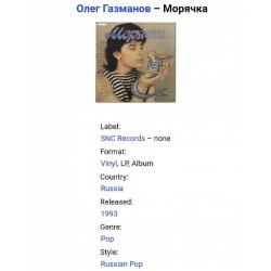 1981-2000Вінілова платівка. Другий, в дискографії, студійний альбом російського (радянського) поп-виконавця Олега Газманова (Морячка) 1993. Випуск фірми (SNC Records / Luna) Russia, 1993-ій рік. Оригінальне першопресове видання. Рідкісне (Rare). Стан платівки VG+. Стан конверту ЕХ. Відправка по Україні службами доставки: Нова Пошта, Укр Пошта, Делівері. Також відправляємо посилки за кордон по цілому світу.