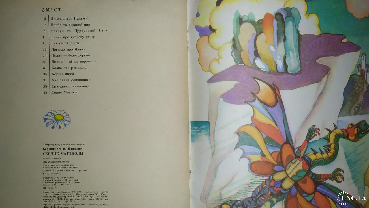 Бердник О. Серце Матіоли. Художник А.Фролов. Київ. Веселка 1991р.г. М'яка обкладинка, великий формат.