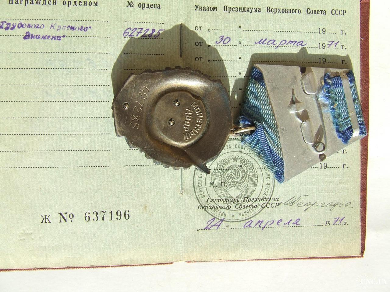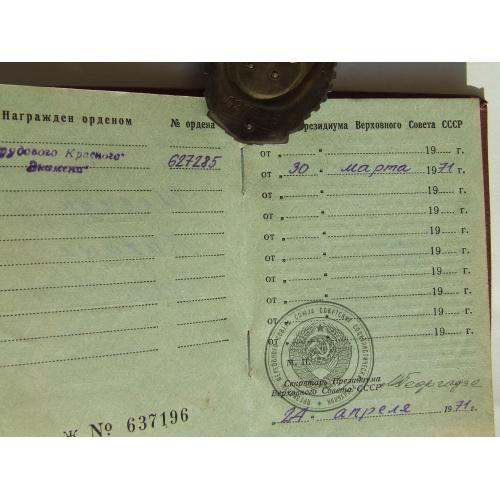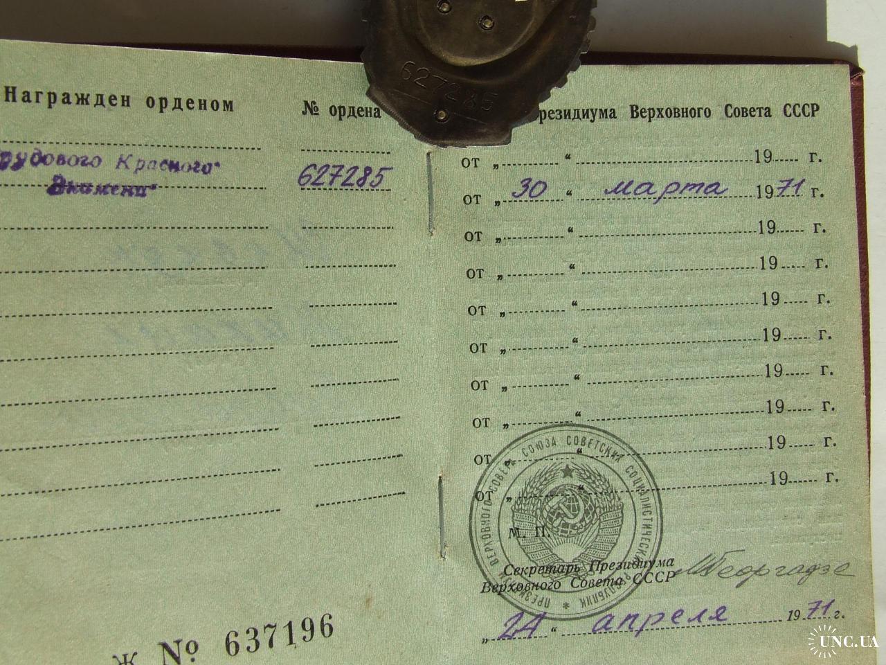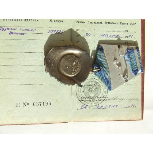 Орден ТКЗ №627285 + доки нагр. 1971 года на Шевчук Мих. . Люкс. В родной патине.