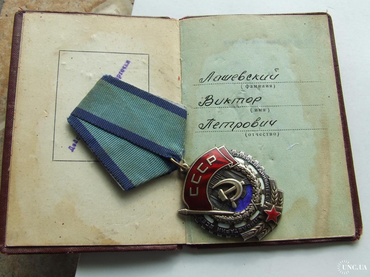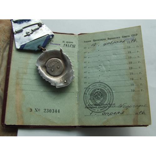Орден ТКЗ № 893 592 + доки нагр. 1974 года на Лошевский Виктор.