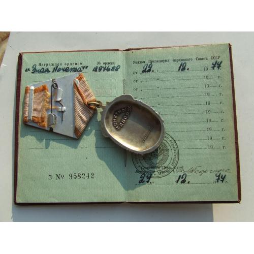 Орден Знак пошани № 1 297 688 нагор. 1977 року на Лінтур Марія Ю.