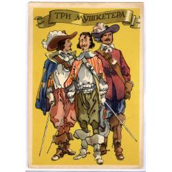 Открытка Три мушкетера Художник К. Ротов 1958 ИЗОГИЗ Шпага Мундир Шляпа