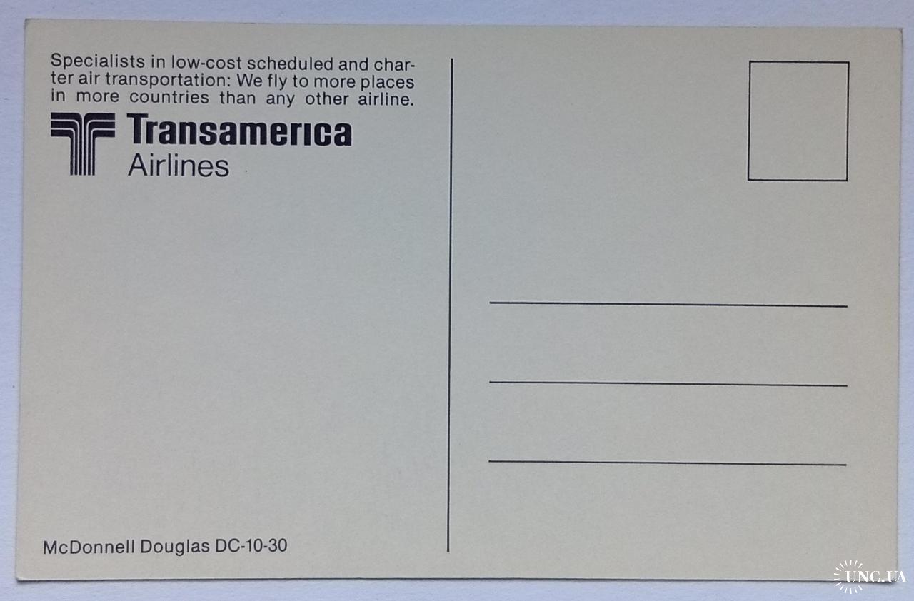 1981-2000Открытка Самолет Transamerica Airlines McDonnell Douglas DC-10-30