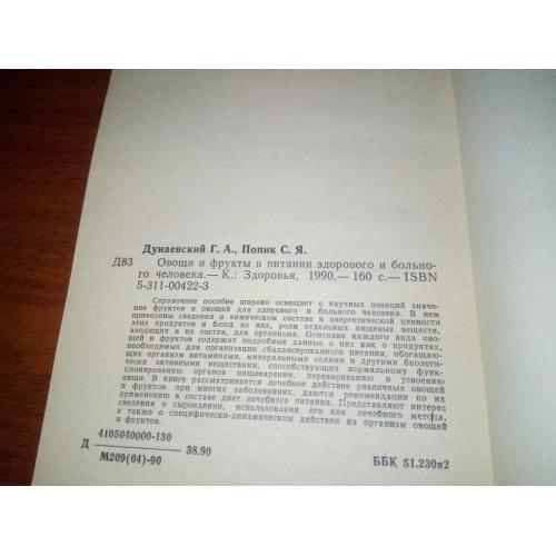 Дунаевского Г.А., Попик С.Я. Овощи и фрукты в питании здорового и больного человека.