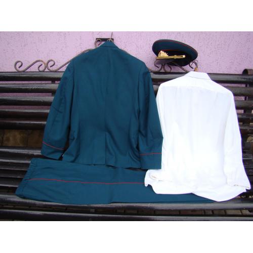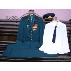 1946-1990В лот входит: парадный китель, штаны (брюки), парадная рубашка с галстуком и латунным зажимом со звездочкой и парадная фуражка. Размер формы 50 на рост до 176 см. Фуражка размер 55. Знаки и медали без дефектов. В остальном все как на фото. В коллекцию.