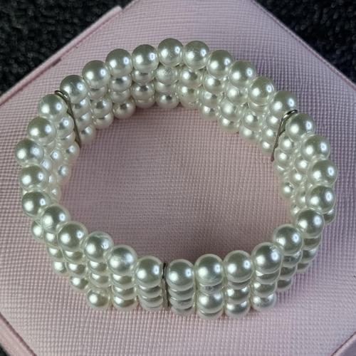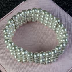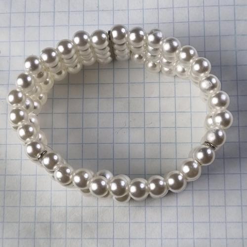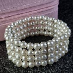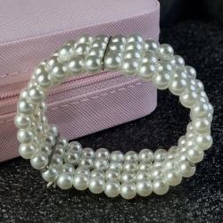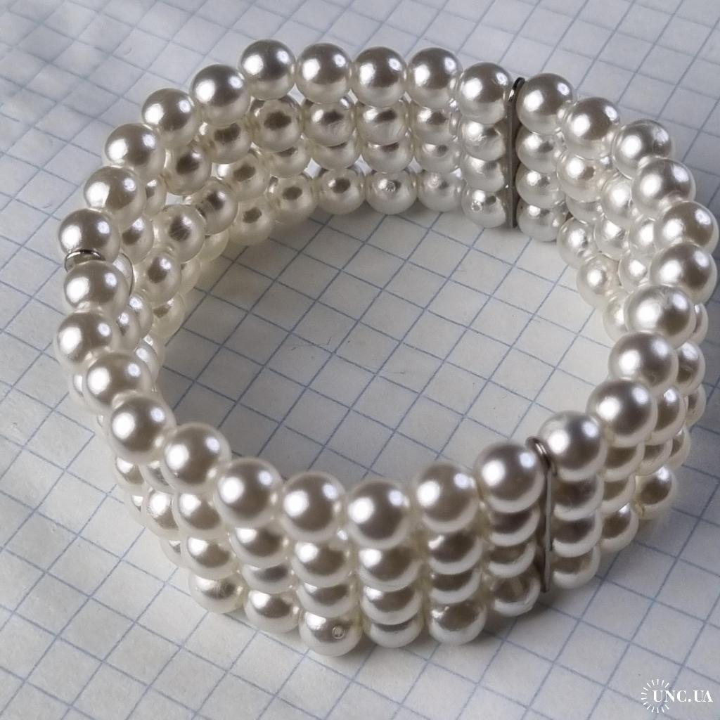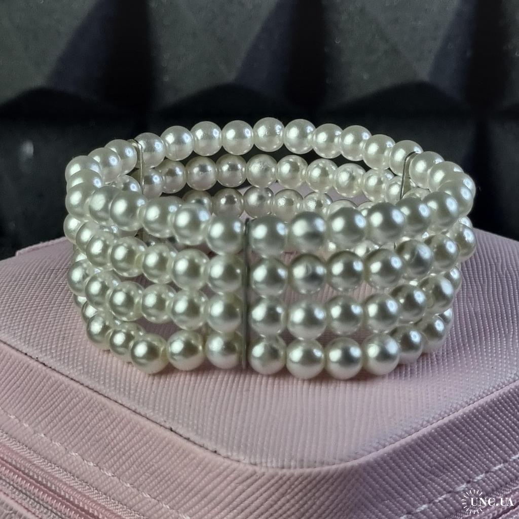 Вишукана багаторядна браслетка з білих штучних перлин, еластична, з металевими розділювачами для зручної посадки. Перлини рівномірні, мають гарний блиск. Ідеально пасує до вечірнього образу, ретро-луків або як акцент до базового стилю.
