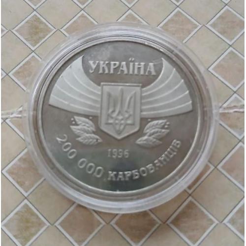 Original10 июля 1996 года вышли две монеты, посвященные олимпийскому движению. «Перша участь у літніх Олімпійських іграх» 200 000 карбованцев: вес 14,35 грамма, диаметр 33 мм, пруф-лайк, рифленый гурт, тираж 100 000 штук.