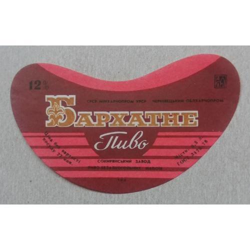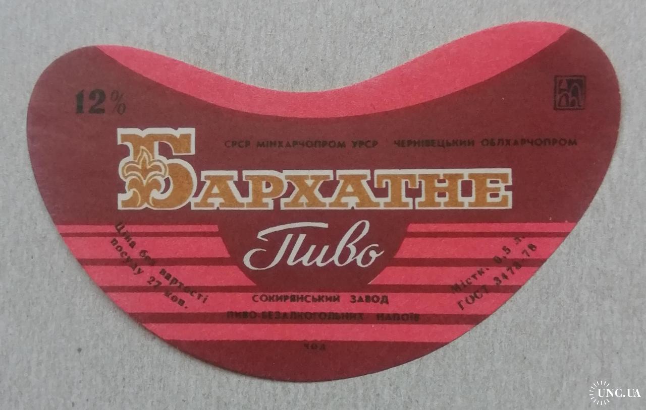 Пивная этикетка БАРХАТНЕ Чернівці СОКИРЯНИ УССР винтаж! БАНАН