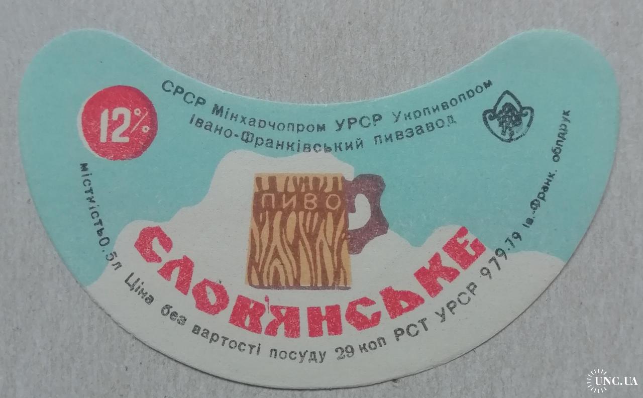 Пивная этикетка СЛОВ'ЯНСЬКЕ Івано-ФранкІвськ УССР винтаж! БАНАН