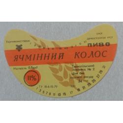 Пивная этикетка ЯЧМІННИЙ КОЛОС Тернопіль УССР винтаж! БАНАН