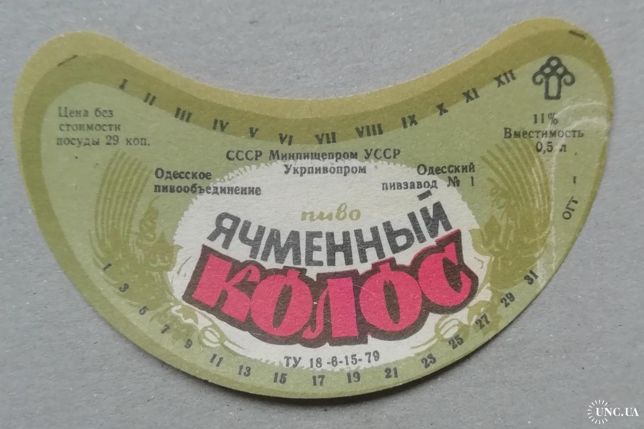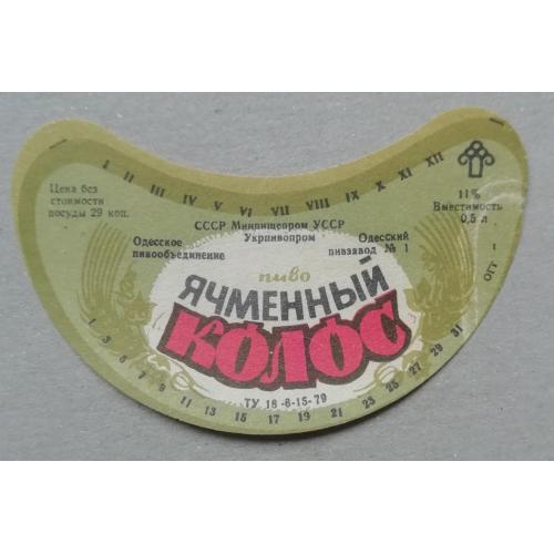 Пивная этикетка ЯЧМЕННІЙ КОЛОС Одесса винтаж!!! БАНАН