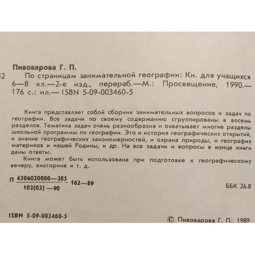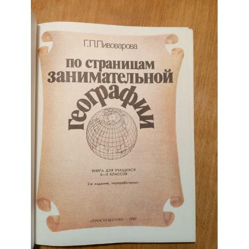 Пивоварова. По страницам занимательной географии. Пособие для учащихся 6-8 классов. Издательство: Просвещение. 1990 год. Отличное состояние.