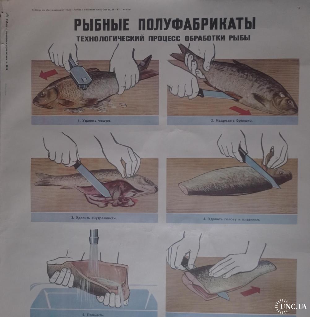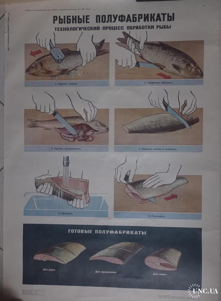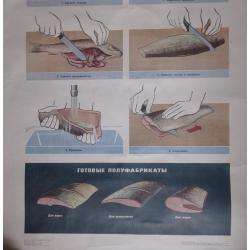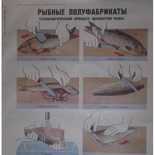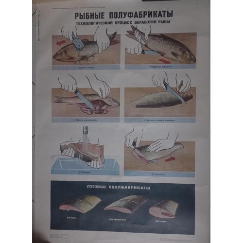 плакат Рыбные полуфабрикаты - 1985 Просвещение / 89х61 см